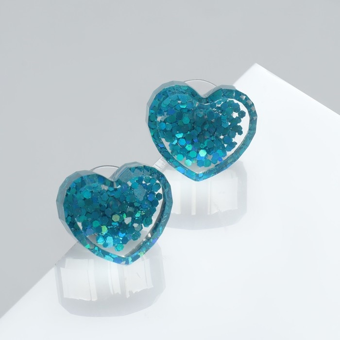 Серьги пластик «Карамель» сердце конфетти, цвет голубой