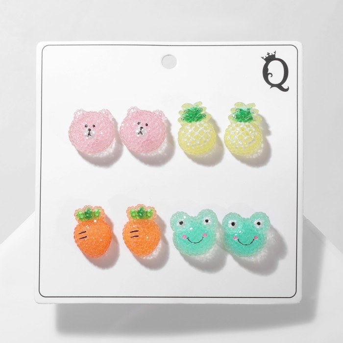 Пусеты 4 пары «Карамель» лето, цветные