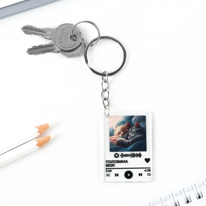 Брелок для ключей акриловый плеер «Половина моя», 3,5 х 10 см