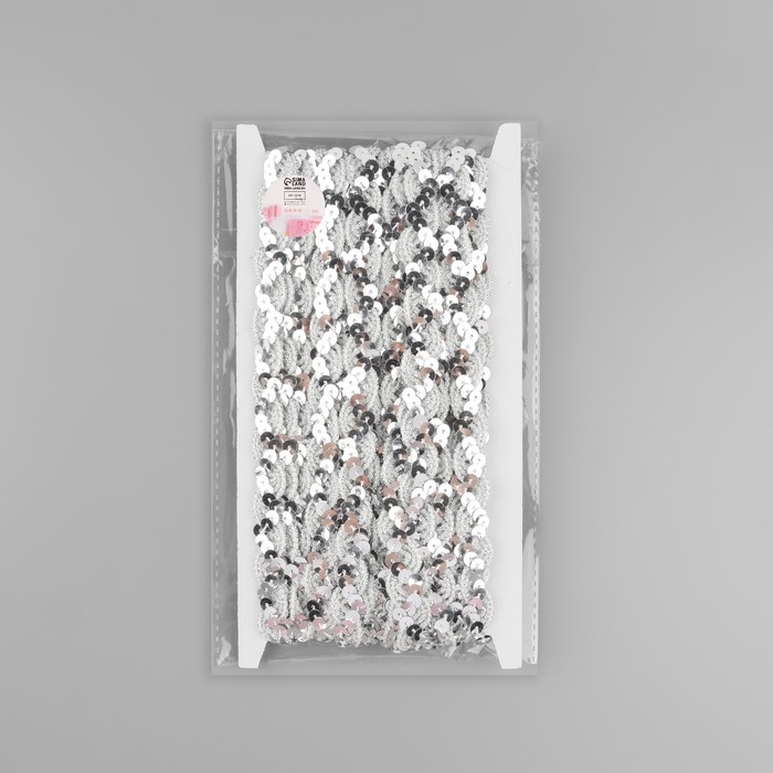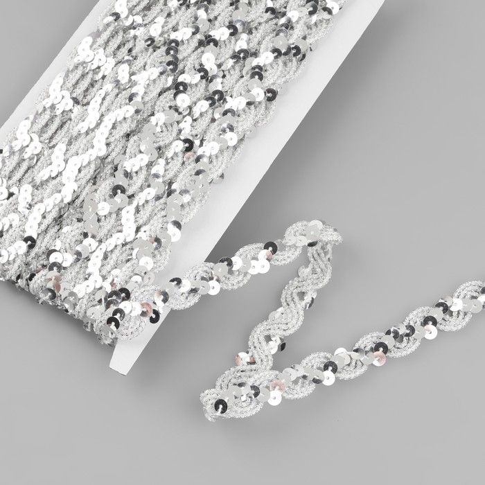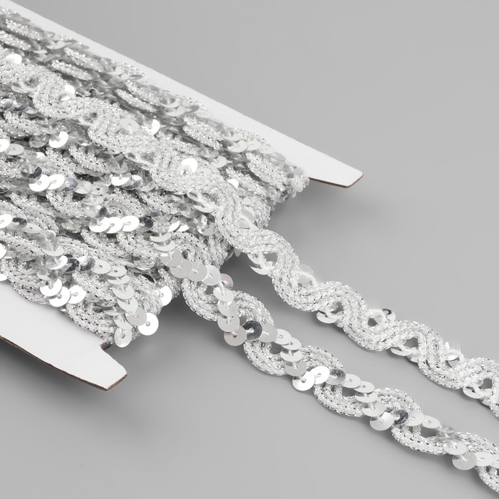 Тесьма декоративная с пайетками, 15 мм, 9,1 ± 0,5 м, цвет серебряный