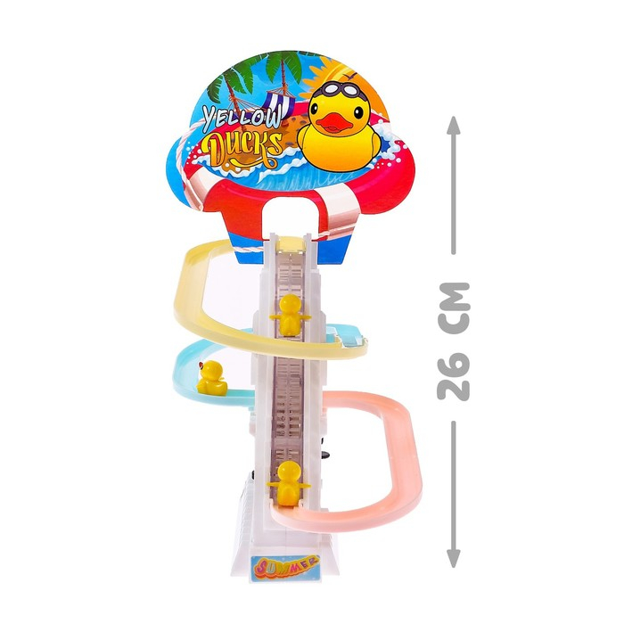 - Пусть малыш расставит уточек у основания эскалатора, и они начнут подниматься вверх под весёлую музыку.