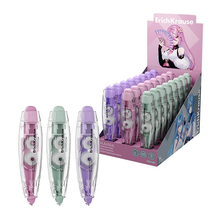 Корректирующая лента 5мм х 6м, ErichKrause "Spin Manga", с автоматической фиксацией аппликатора, микс