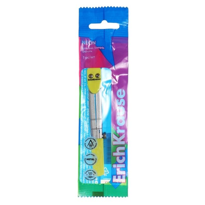 Циркуль металлический ErichKrause "Neon" 120мм, блистер, желтый