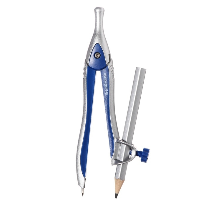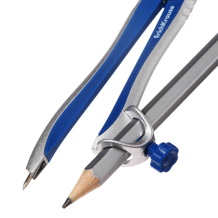 Циркуль металлический ErichKrause "Classic", 125мм, с карандашом, пенал, синий