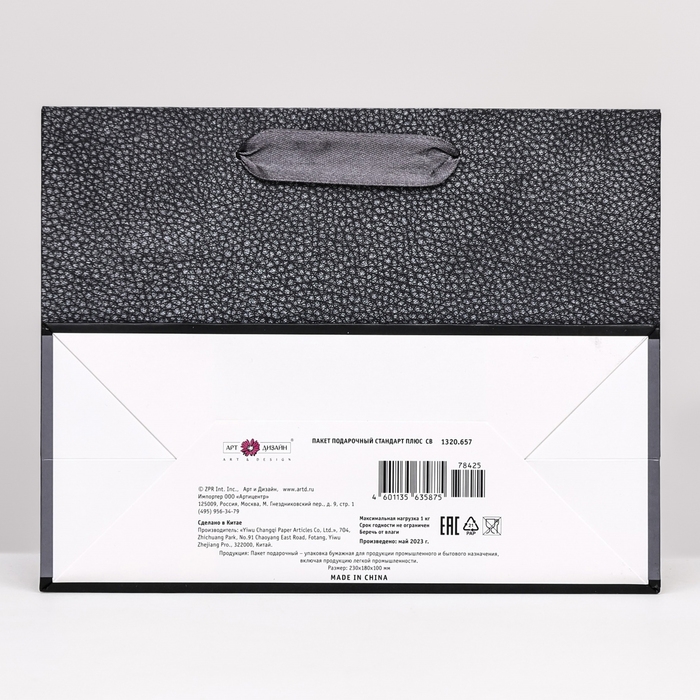 Удобные ручки позволяют легко переносить пакет, обеспечивая комфорт и удобство как во время покупок, так и при передвижении с подарками или другими предметами.