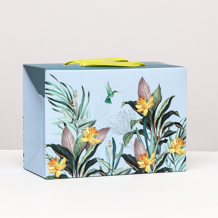 Пакет подарочный "Цветы" голубой, 23 х 16 х 11 см