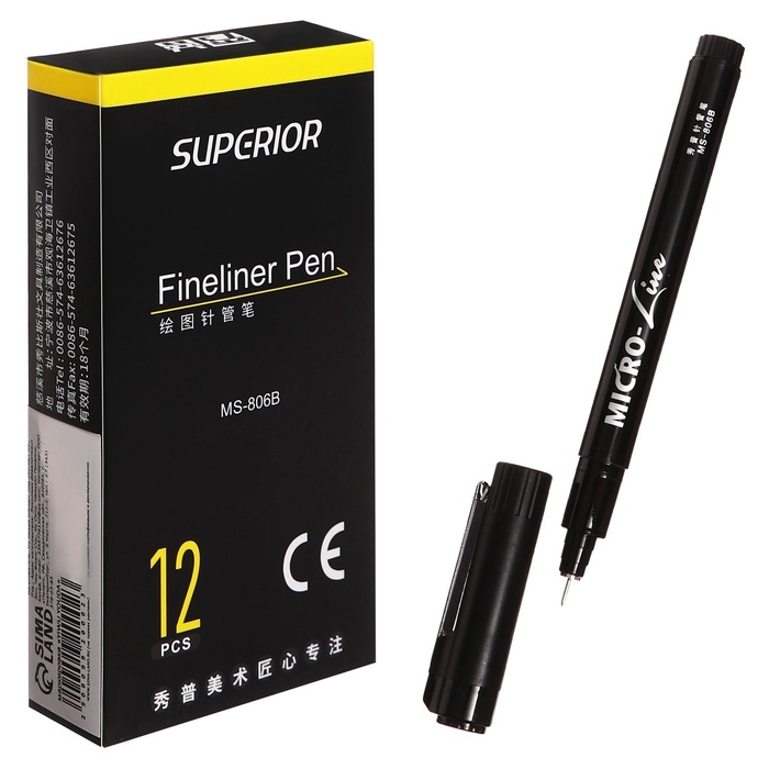 Маркер профессиональный линер черный, тонкая линия, 0.03мм