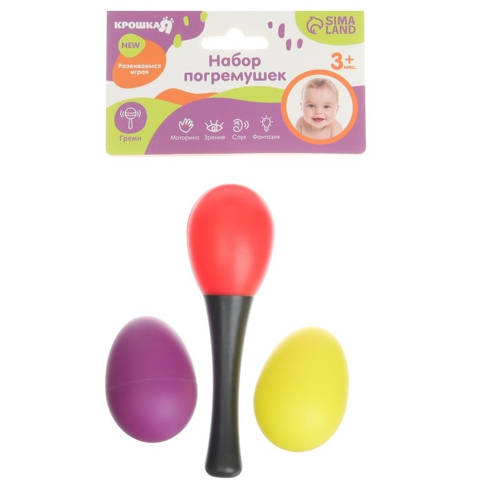 Погремушки с легкостью привлекут внимание Вашего малыша и будут способствовать его развитию, познанию мира звуков, цветов и визуальному восприятию.