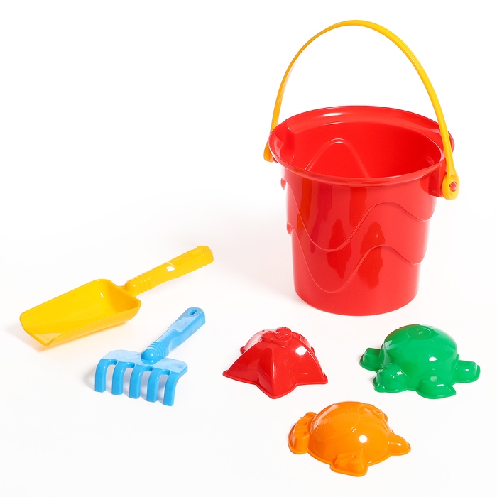Набор песочный: ведро, 3 формочки, лопатка, грабли