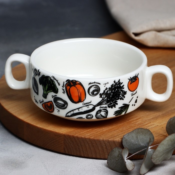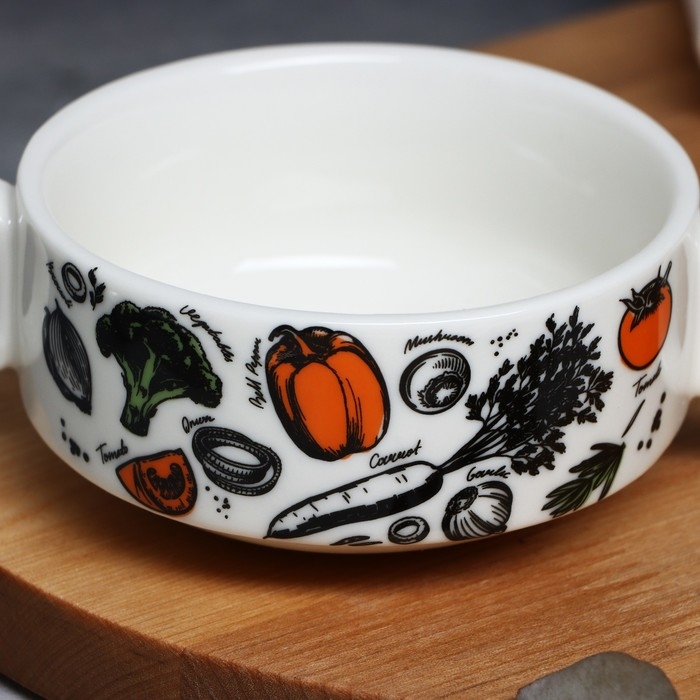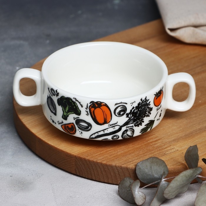 Супница с ручками керамическая «Овощи», 10.5 х 5 см, 220 мл, цвет белый
