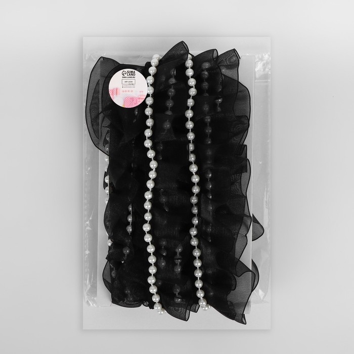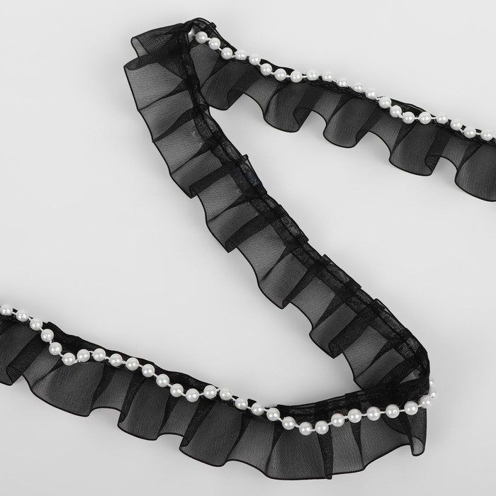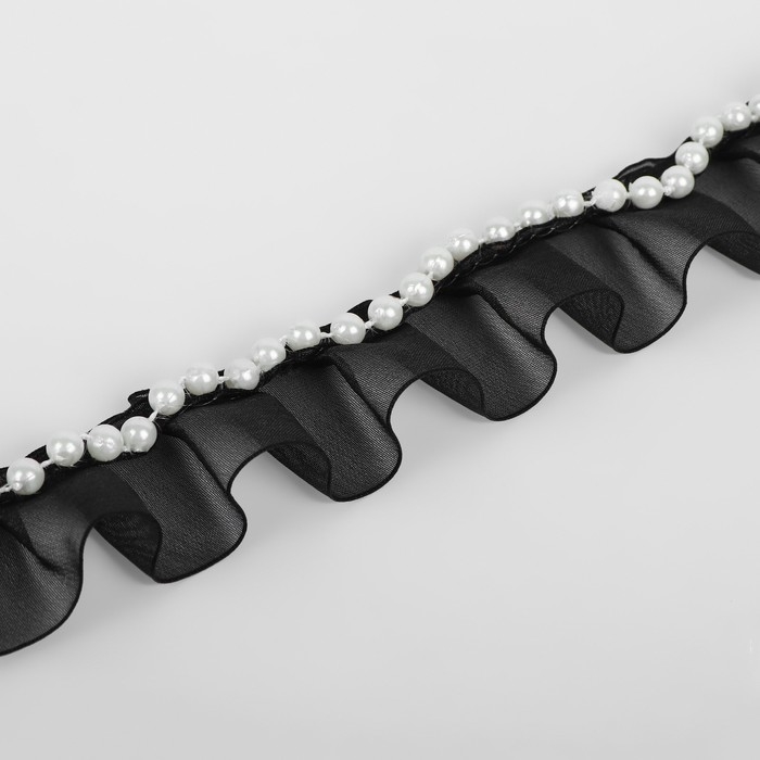Рюш капроновый, с бусинами, 30 мм, 4,5 ± 0,5 м, цвет чёрный/белый