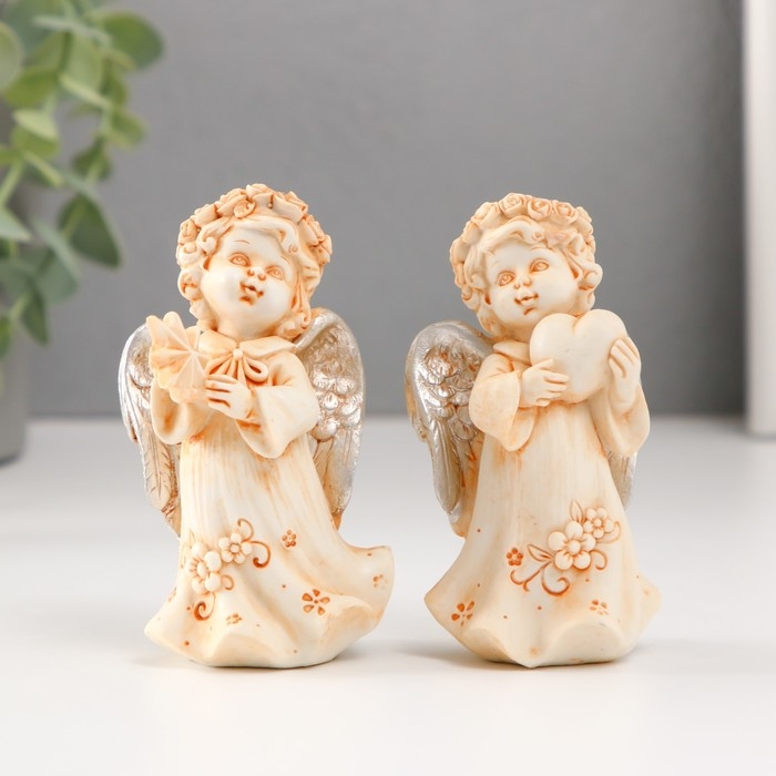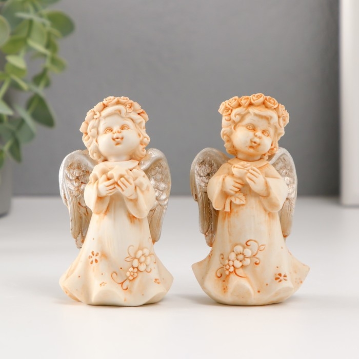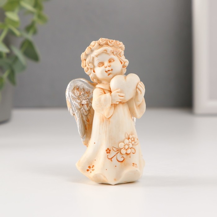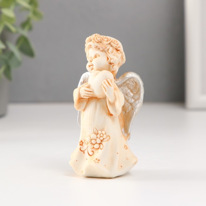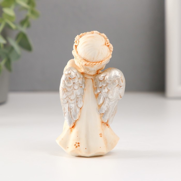 Сувенир полистоун "Ангел в цветочном платье и венке с серебристыми крыльями" МИКС 8,5 см
