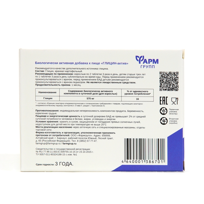 Глицин -актив не является лекарственным средством и не может заменить полноценное питание. Перед применением необходимо проконсультироваться с врачом.