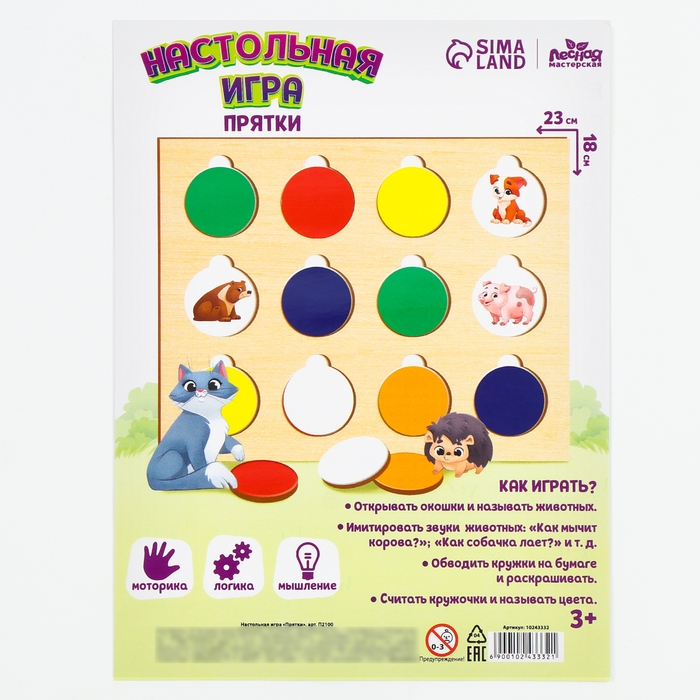 Настольная развивающая игра для детей «Прятки. Найди животных»