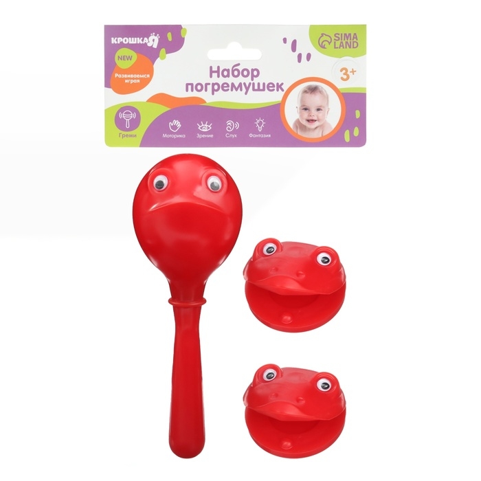 Набор погремушек «Лягушата: кастаньеты + перкуссионный маракас, 3 шт., цвет красный, Крошка Я