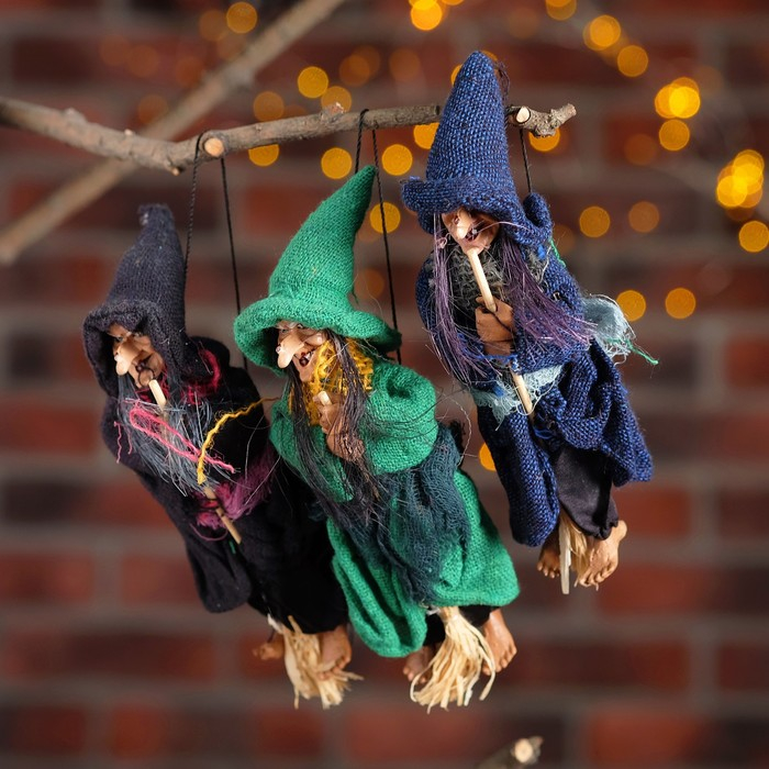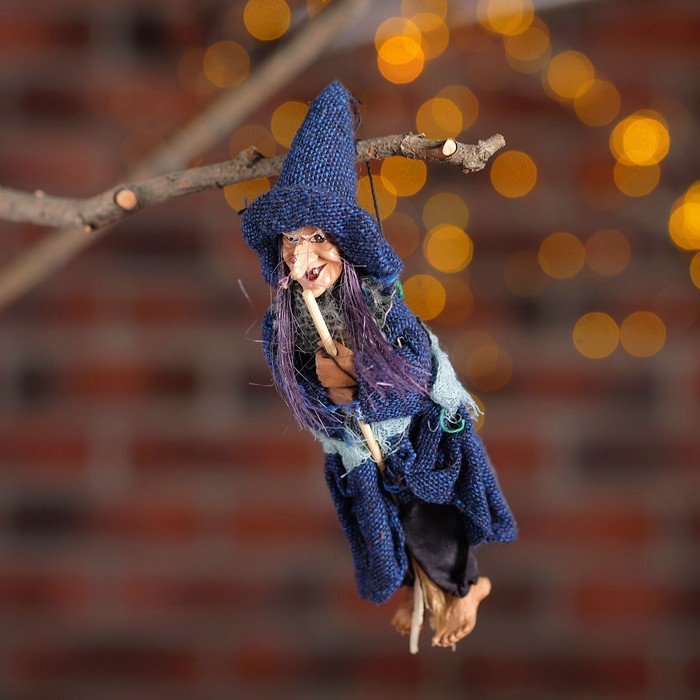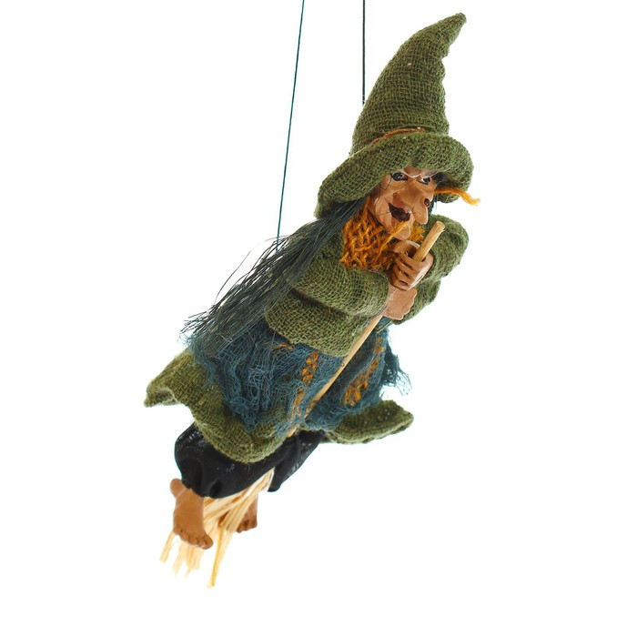 Баба - Яга в лохмотьях, с метлой, висит, МИКС