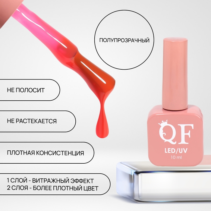 Гель лак для ногтей «STAINED GLASS», 3-х фазный, 10 мл, LED/UV, цвет (70)