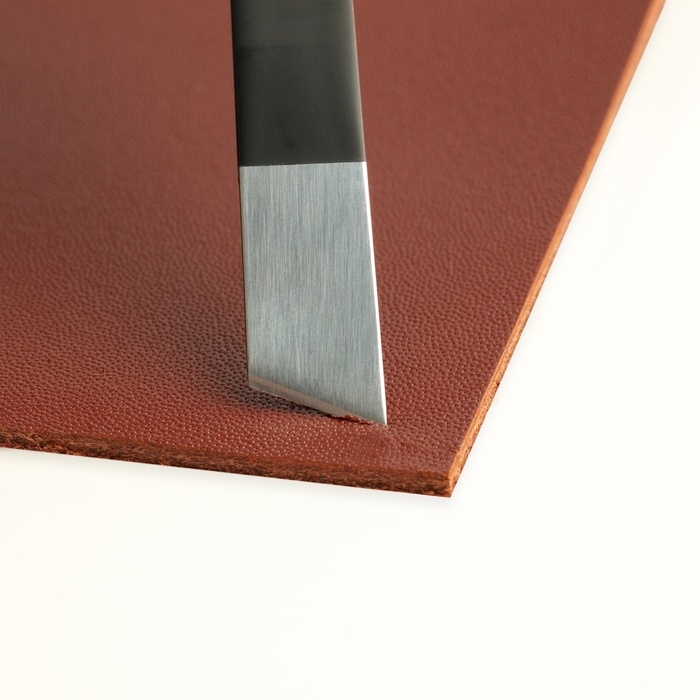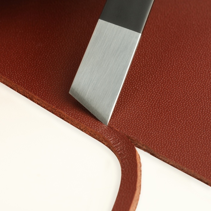 Нож для кожи является незаменимым инструментом в работе кожевника. Благодаря скошенной форме лезвия он будет удобен для резки под углом. Помогает создавать чёткие и аккуратные срезы, что важно для внешнего вида готовых изделий.