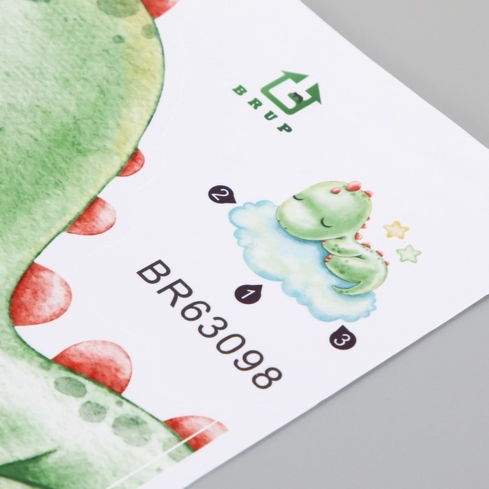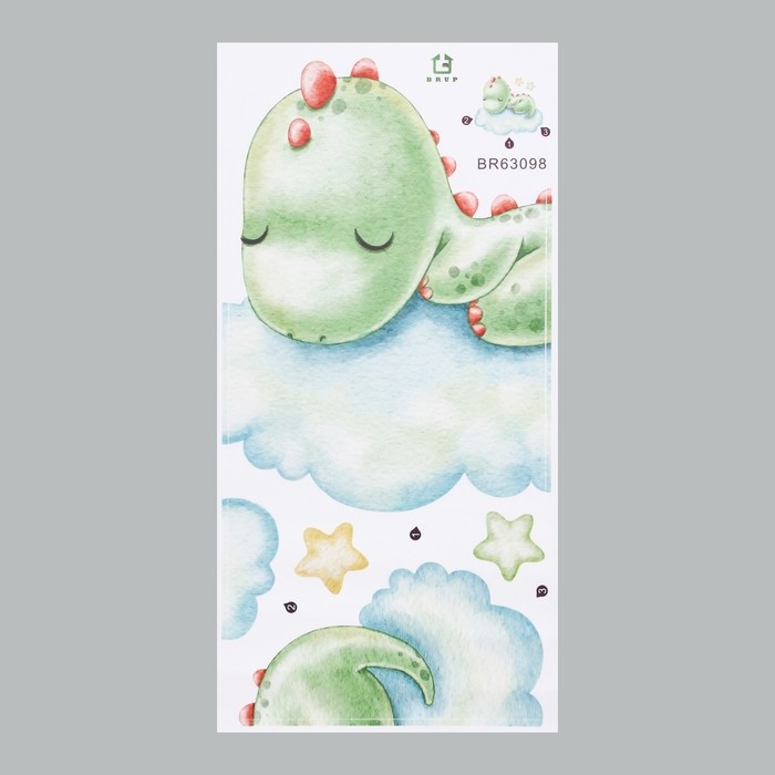 Наклейка пластик интерьерная цветная "Малыш-динозавр на облаке" 30х60 см