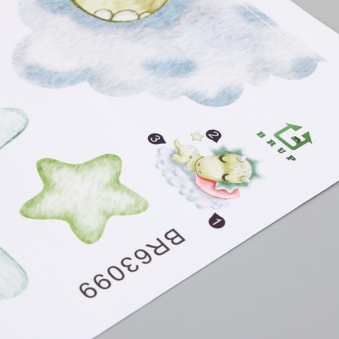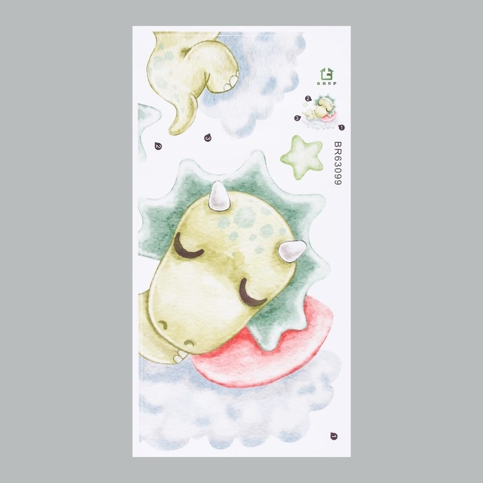 Наклейка пластик интерьерная цветная "Малыш-трицератопс на облаке" 30х60 см