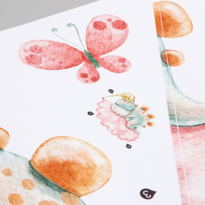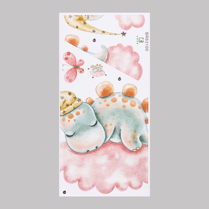 Наклейка пластик интерьерная цветная "Малыш-стегозавр на облаке" 30х60 см