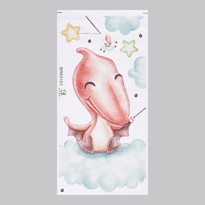 Наклейка пластик интерьерная цветная "Малыш-птеродактиль на облаке" 30х60 см