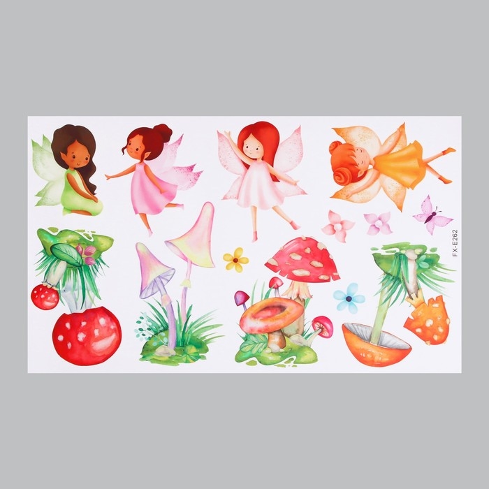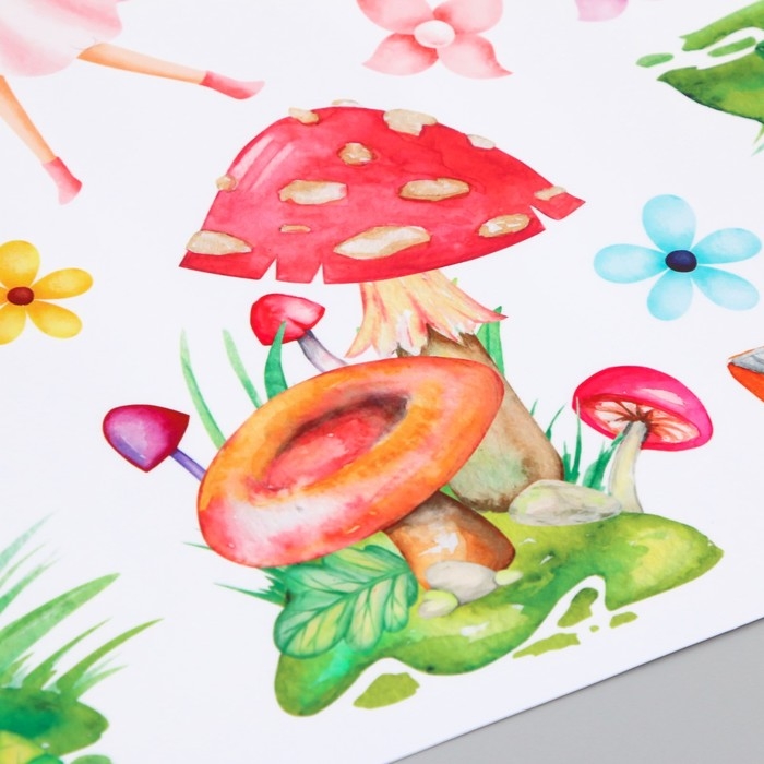 Наклейка пластик интерьерная цветная "Лесные феи с грибами" 35х60 см