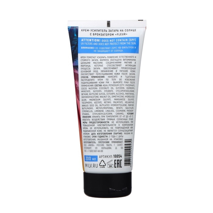 Крем-усилитель загара на солнце с бронзатором MILV ваниль, имбирь, сандал, 200 мл