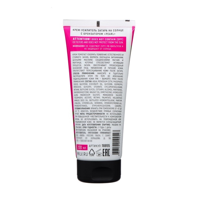 Крем-усилитель загара на солнце с бронзатором MILV роза, бергамот, пачули, 200 мл