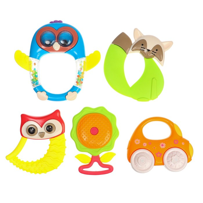 Погремушки - это не просто игрушки, это ключевой элемент в развитии малыша. Они помогают развивать мелкую моторику, зрительное и слуховое восприятие и улучшают координацию движений. В нашем наборе вы найдете разнообразные погремушки с силиконовыми прорезывателями, которые помогут малышу справляться с режущимися зубками. Мягкий силикон без острых углов обеспечивает безопасность и комфорт для ребенка.