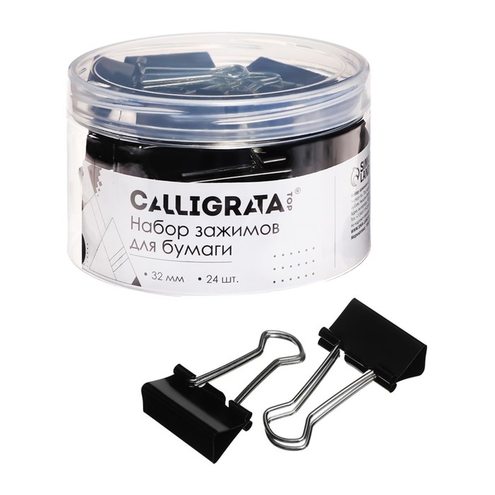 Набор зажимов для бумаг 32 мм, 24 штук, в пластиковой тубе, черные