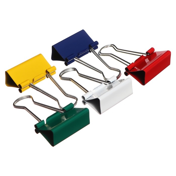 Набор зажимов для бумаг цветных 32мм, 12 штук, 5 цветов, в картонной коробке