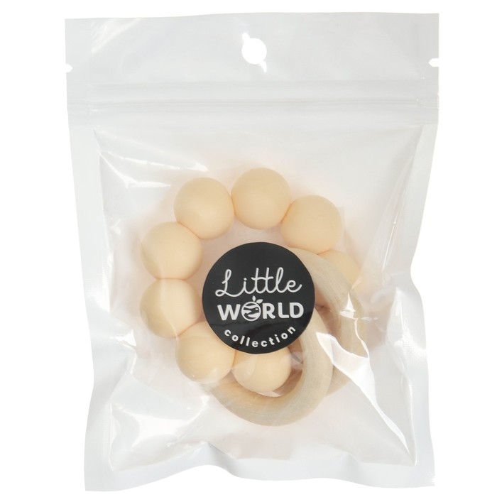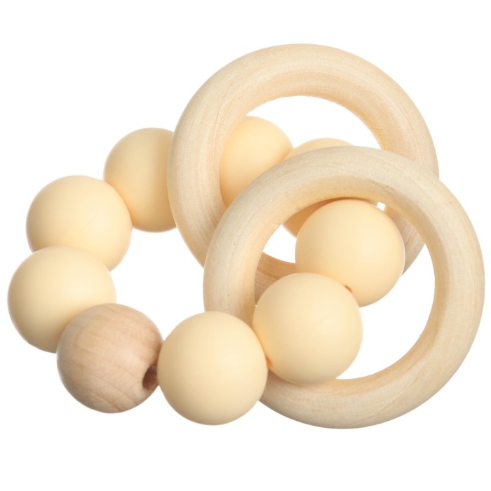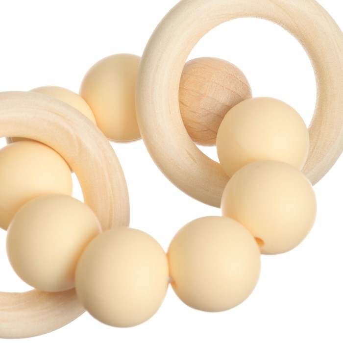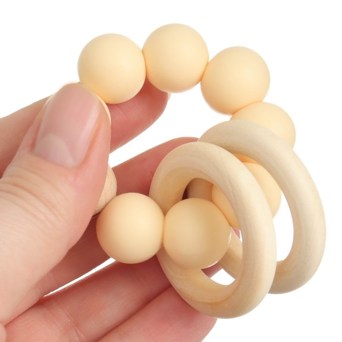 Прорезыватель силиконовый с деревянным кольцом, цвет бежевый, Mum&Baby