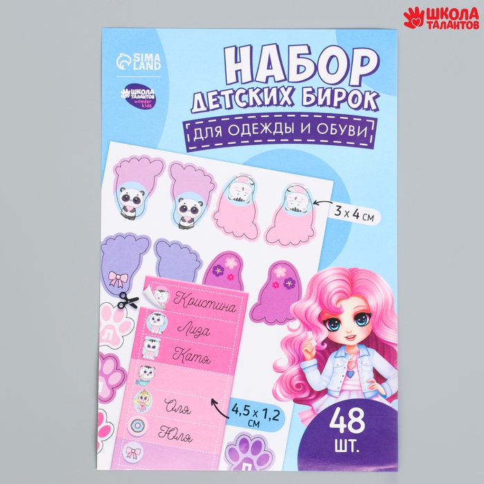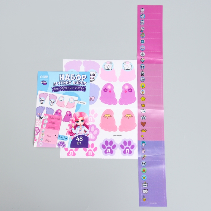 Бирки для одежды и обуви. Набор именных наклеек для маркировки детских вещей «Стильная красавица», 48 шт