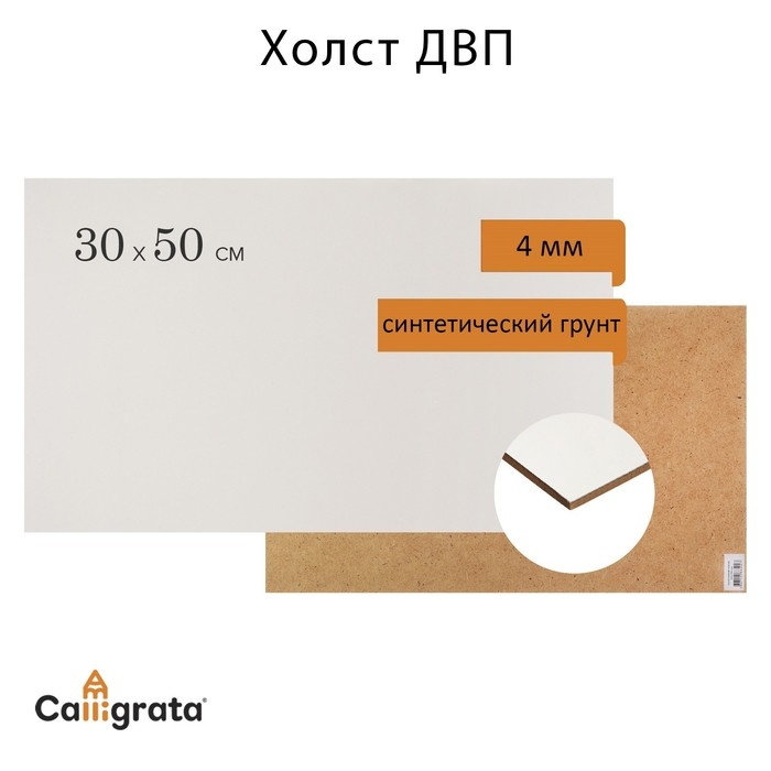 Основа (ДВП) грунтованная 30 х 50 см, 4.0 мм, синтетический грунт, белый