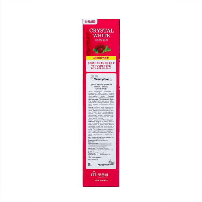 Отбеливающая гелевая зубная паста с ароматом клюквы и мяты Crystall White от южнокорейского концерна MUKUNGHWA. Эффективно отбеливает зубы и удаляет зубной налет.