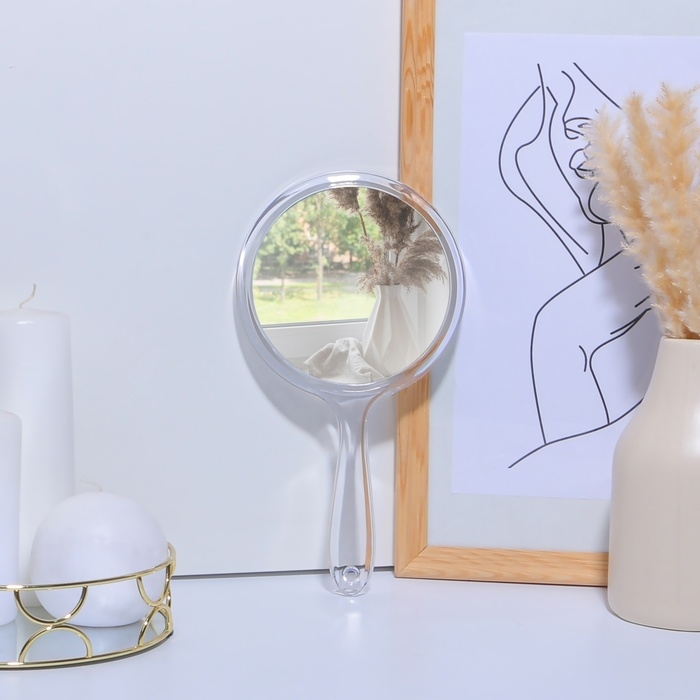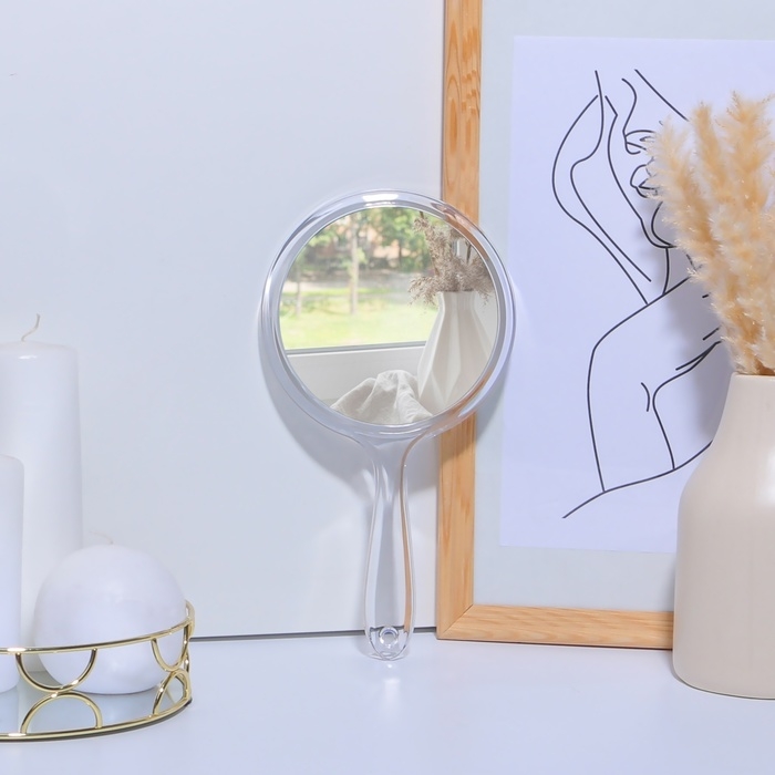 Зеркало с ручкой, двустороннее, с увеличением, d зеркальной поверхности 12,5 см, цвет прозрачный