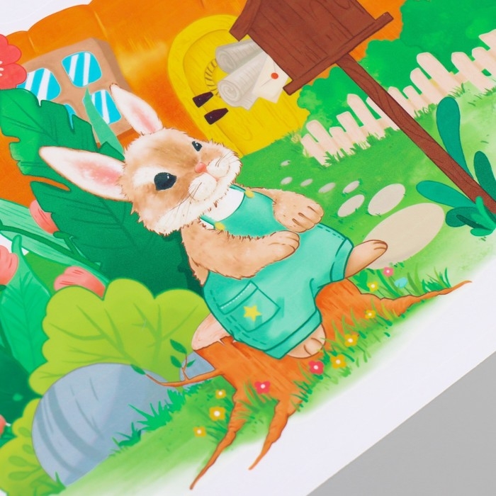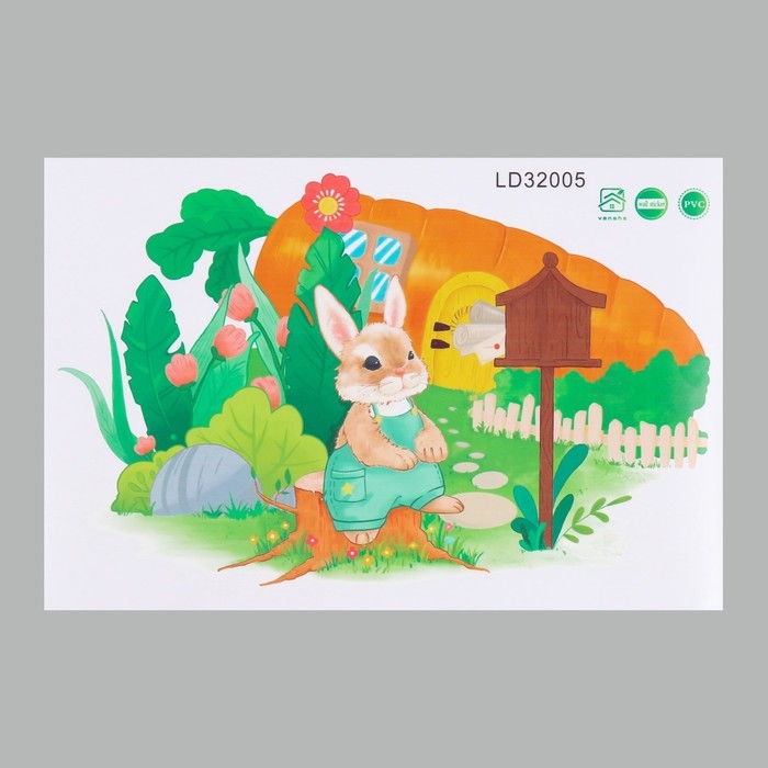 Наклейка пластик интерьерная цветная "Зайка на пеньке" 20х30 см