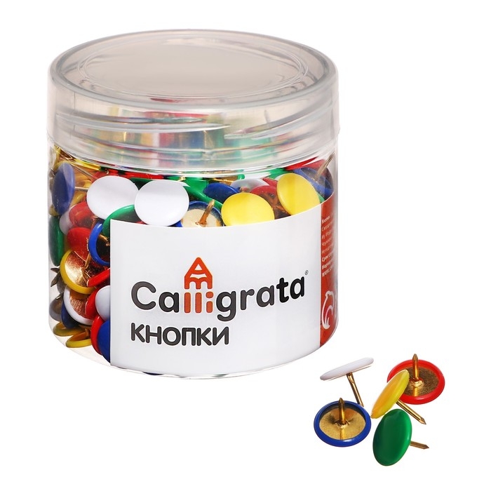 Кнопки канцелярские 12 мм, 300 штук, цветные, в пластиковой тубе