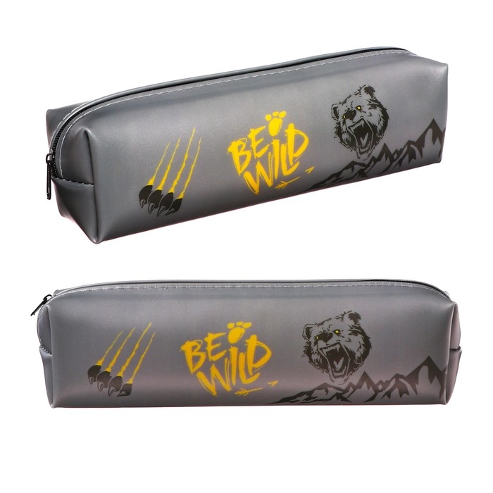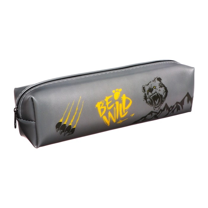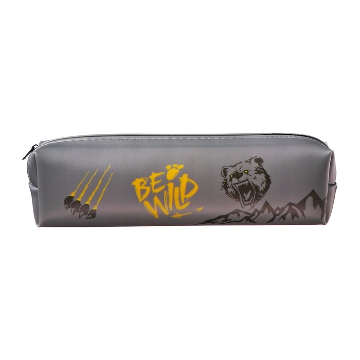 Пенал школьный на молнии "Медведь" Calligrata, серый