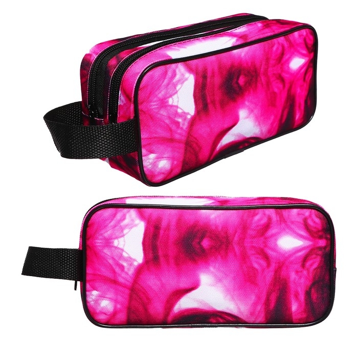 Пенал мягкий 2 отделения, 100 х 220 х 70 мм, объёмный, с ручкой,Calligrata, "Фуксия"