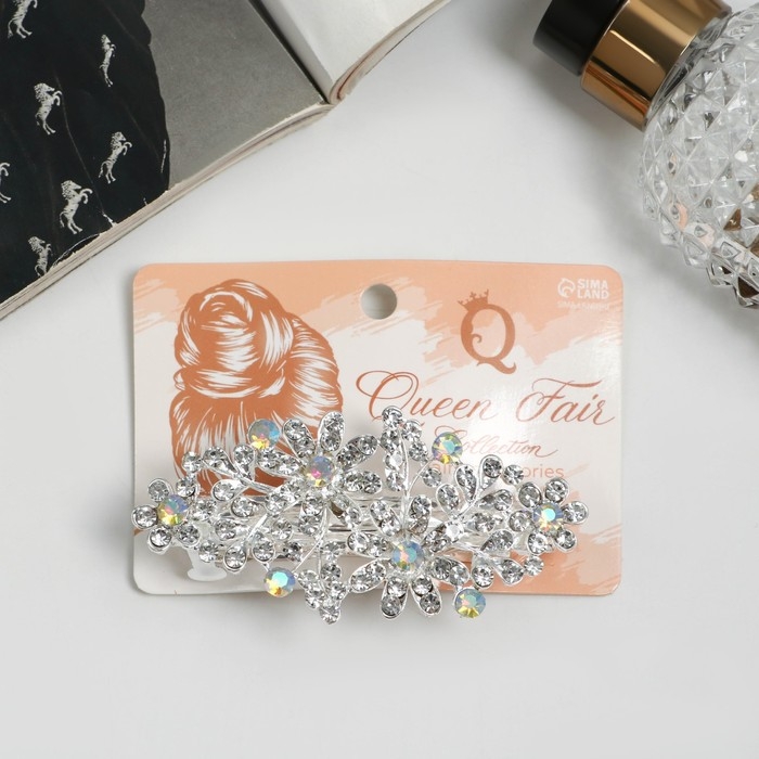 Заколка-автомат для волос "Лира" 8,5 см, серебро