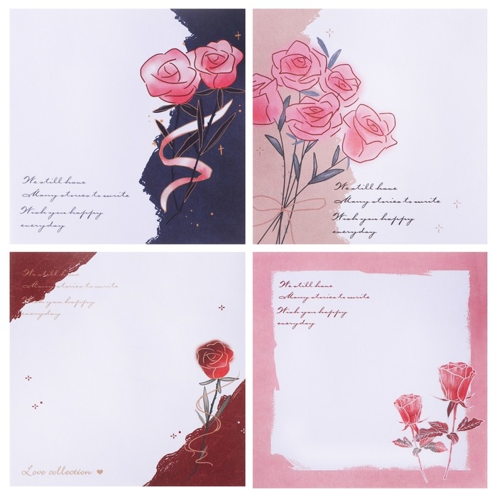 Блок с липким краем 80 х 80 мм, 70 листов, с рисунком розы , микс