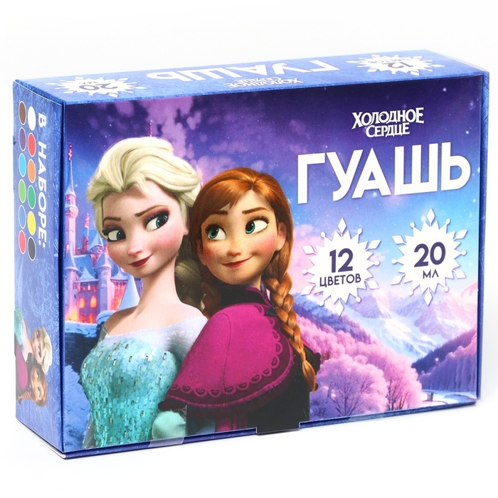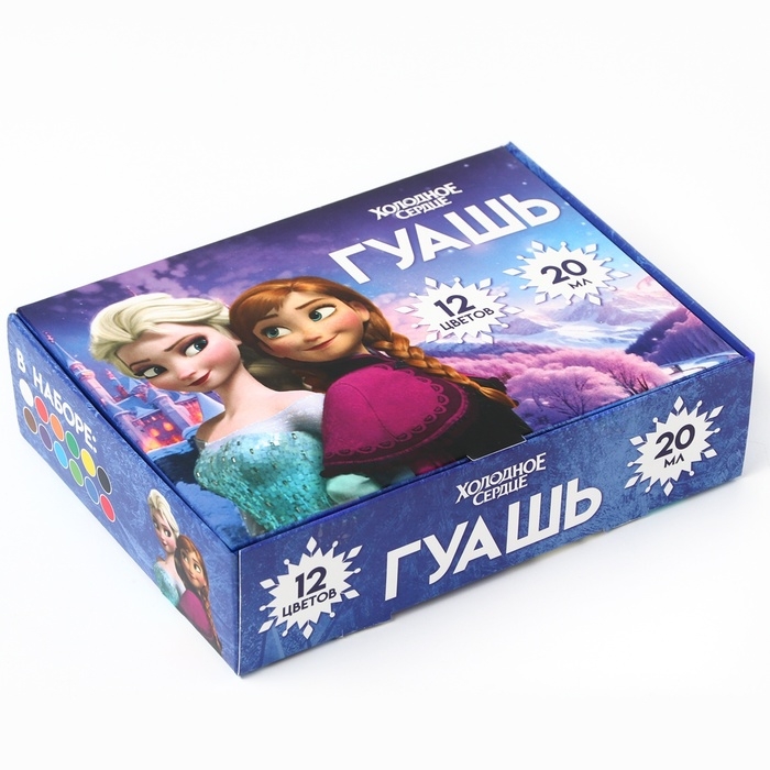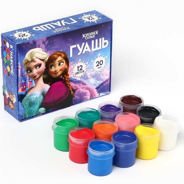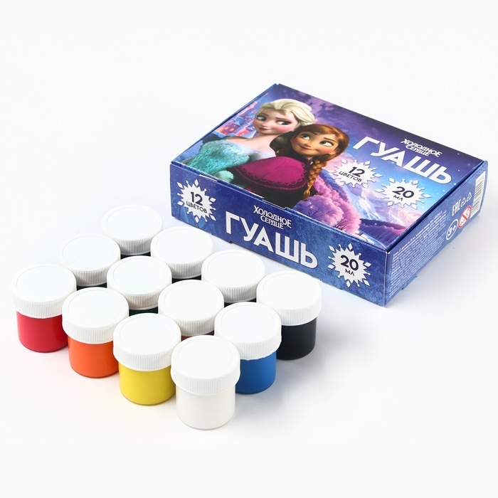 Гуашь 12 цветов по 20 мл, Холодное сердце