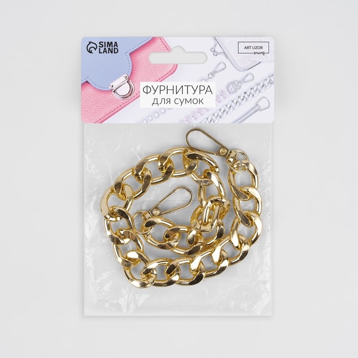 Цепочка для сумки, с карабинами, металлическая, 19 × 15 мм, 60 см, цвет золотой