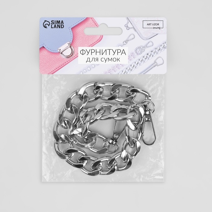 Цепочка для сумки, с карабинами, железная, 12,5 × 7,5 мм, 60 см, цвет серебряный