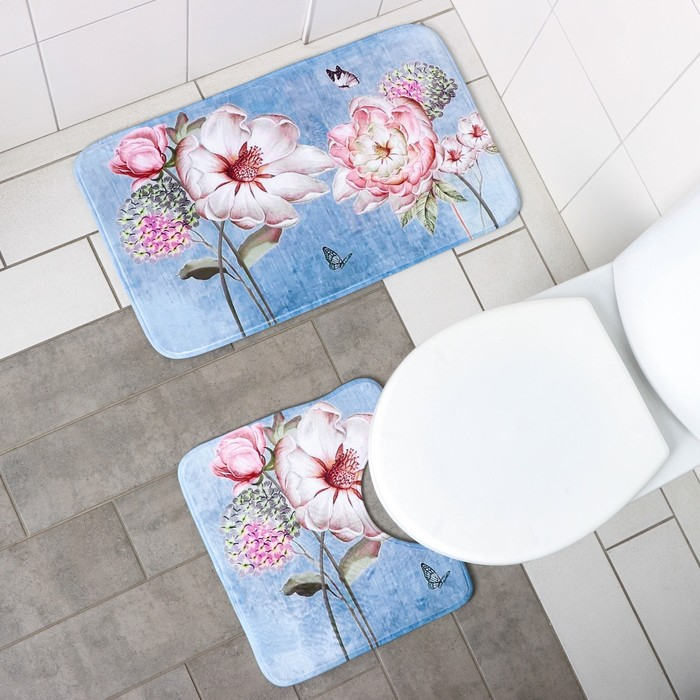 Коврики для ванной и туалета Доляна «Весна», 2 шт: 40×45 см, 45×75 см