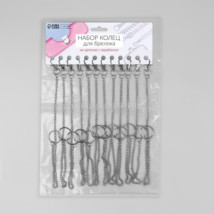 Кольцо для брелока на цепочке, с карабином, d = 25 мм, 35,5 см, 12 шт, цвет серебряный
