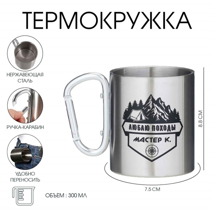 Термокружка, 300 мл, Карабин "Люблю походы"