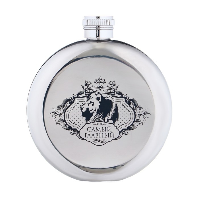 Фляжка для алкоголя "Самый главный", нержавеющая сталь, круглая, подарочная, 150 мл
